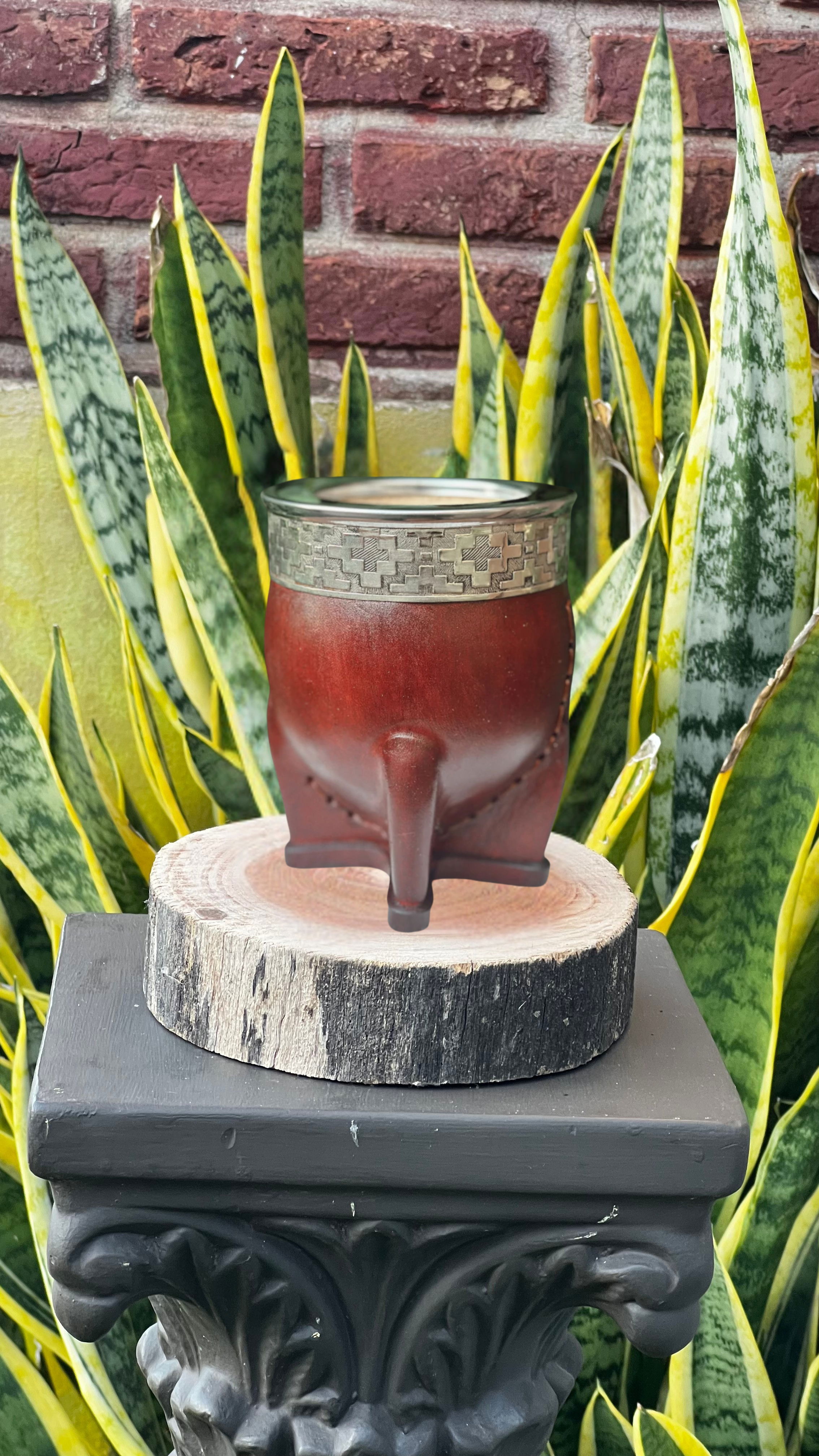 Mate imperial cuero liso de alpaca y cuero. No incluye bombilla.