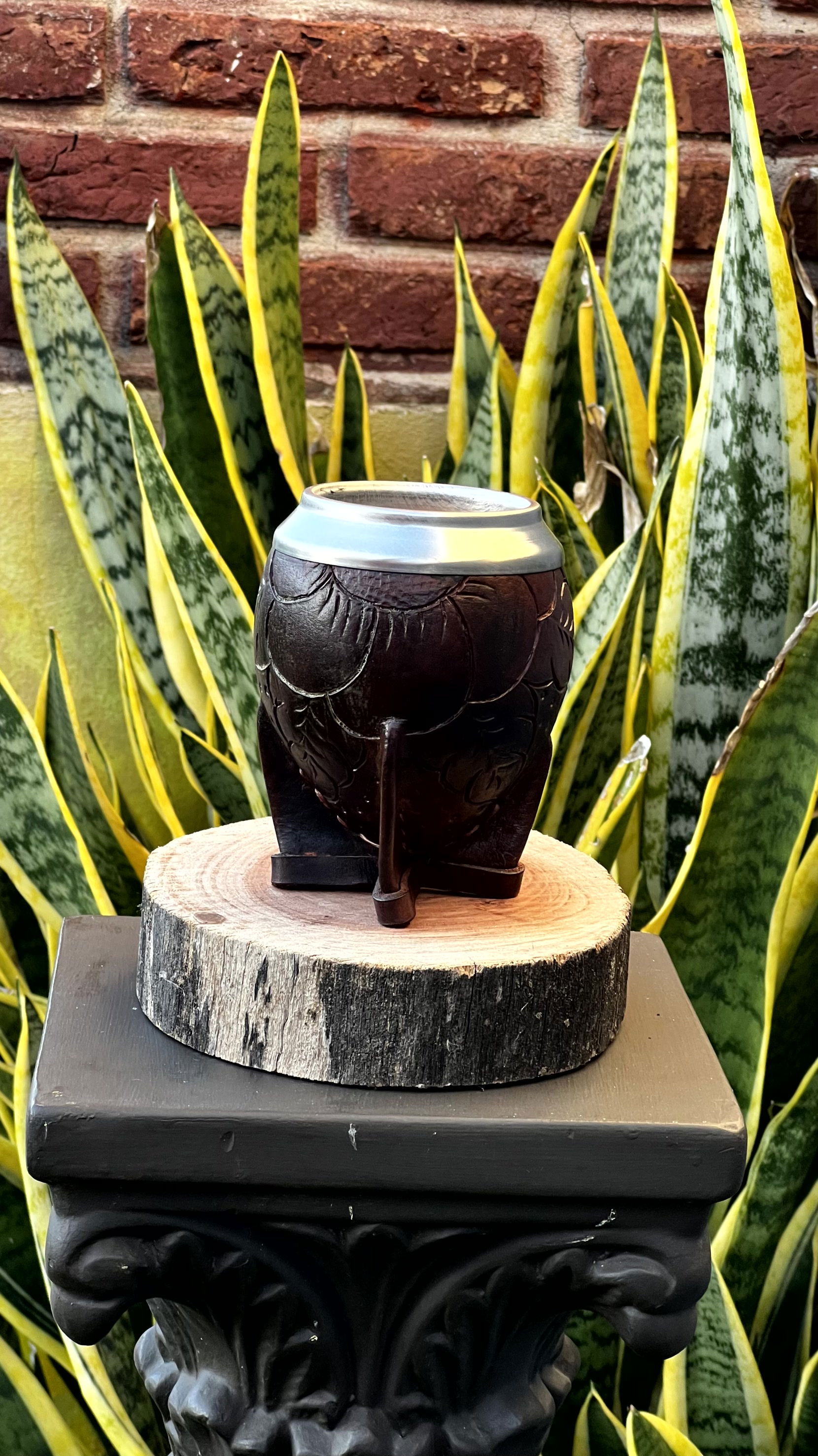 El Torpedo imperial cuero repujado es el favorito de los que buscan comodidad y un mate duradero. Su formato se adapta perfectamente a la mano y su base firme lo hace ideal para la oficina, el auto o el estudio.