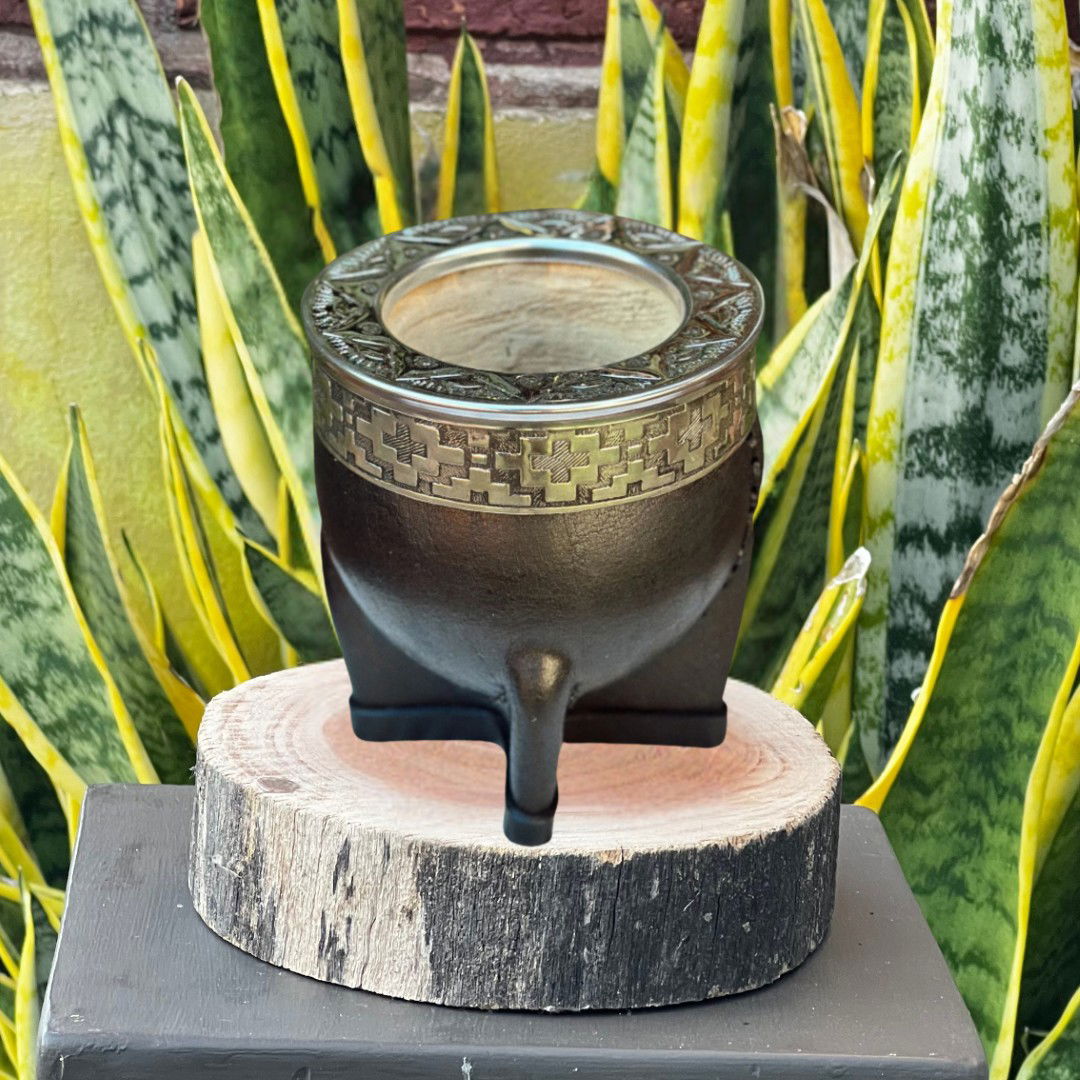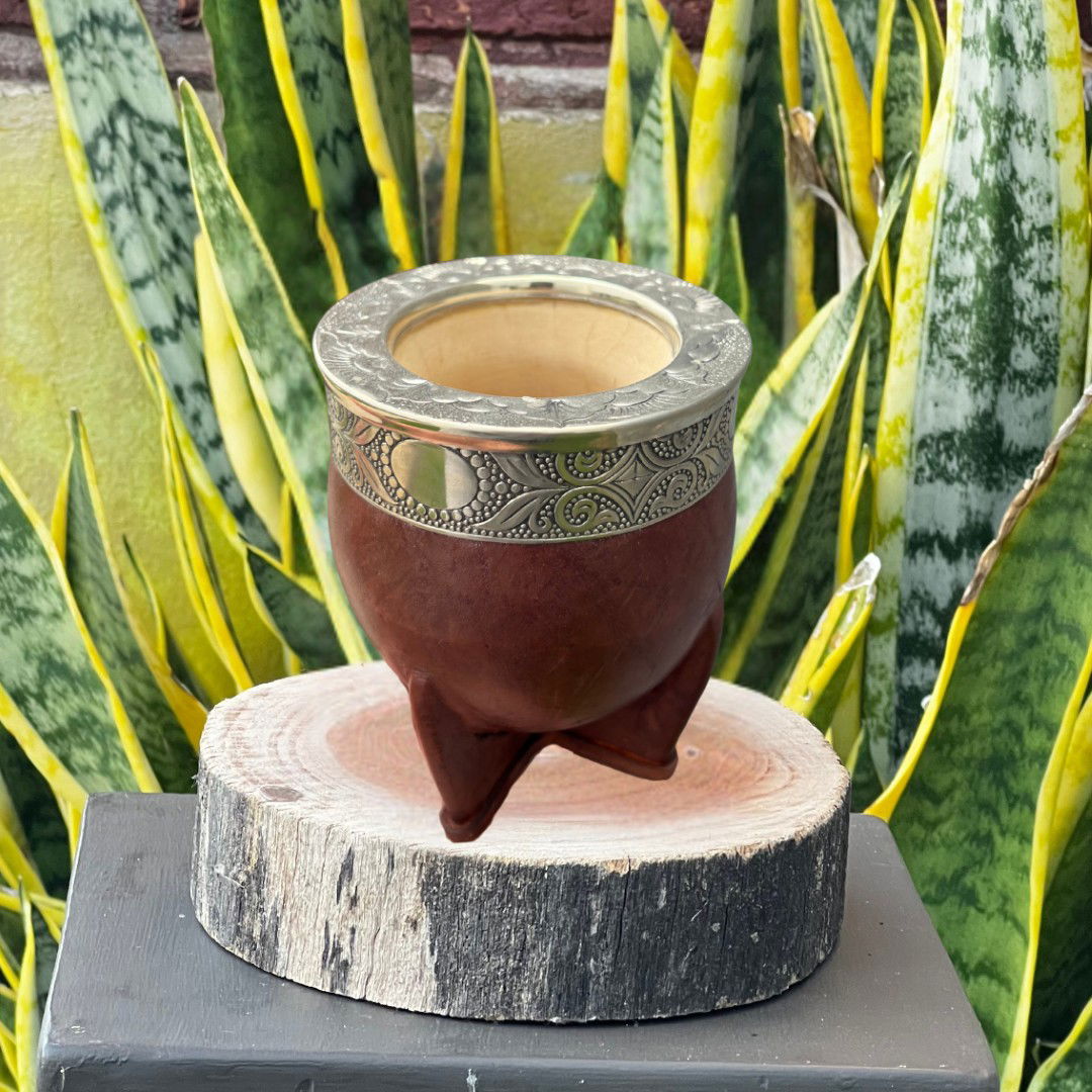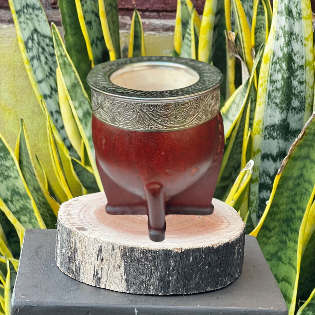 Al ser un producto artesanal, cada mate es 煤nico. Las medidas pueden variar ligeramente y el trabajo de cincelado tiene detalles propios de una pieza hecha a mano.