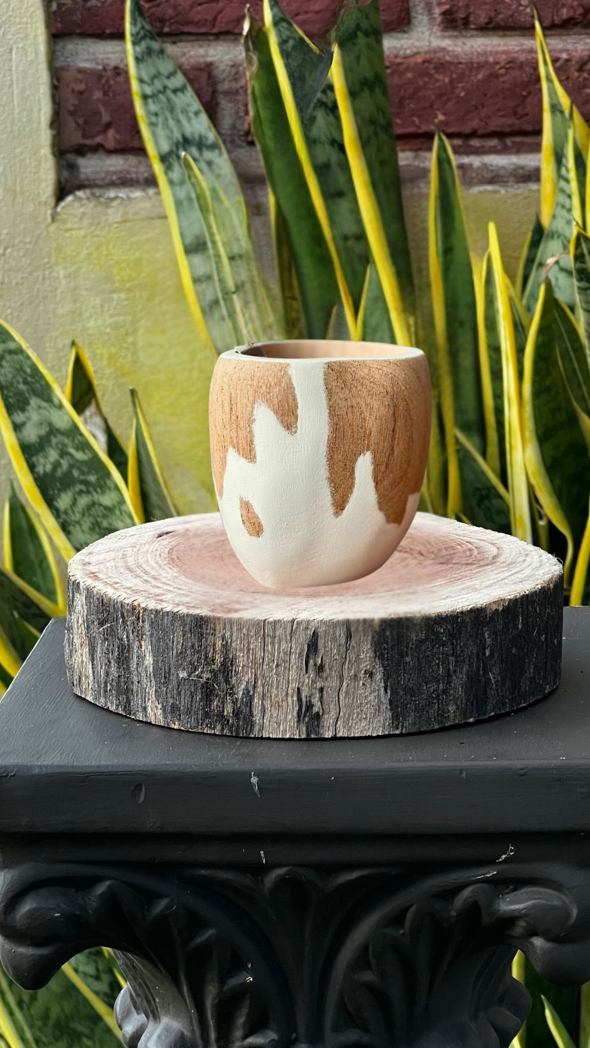 Este mate de algarrobo está trabajado artesanalmente y lleva en el frente los clavos reales que definen el verdadero estilo ranchero/muu. Pura tradición con un toque rústico que enamora.